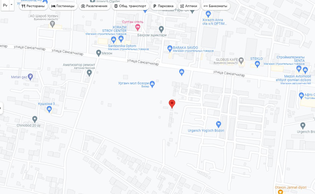 Tadbirkorlik va shaharsozlik faoliyatini amalga oshirish uchun yer uchastkalarini ajratish bo‘yicha onlayn auksionga Farmatsevtika mahsulotlarini ishlab chiqarish yo'nalishida 11 ta lot chiqarilgan bo'lib, joylashgan manzili Xorazm viloyati Urganch shahar Ashxobod MFYda (Mo'ljal: Urganch taxta bozori yon tomoni). Ushbu lotlardan Ampula ko'rinishidagi steril dori vositalari ishlab chiqarish, Tabletka, kapsula, sashe ko'rinishidagi dori vositalari ishlab chiqarish, Bir martalik shpris ishlab chiqarish, Bir martalik infuzion sistemalar ishlab chiqarish, Sterillanmagan bir martalik tibbiy qo'lqoplar ishlab chiqarish, In'eksiya uchun steril antibiotik kukuni ko'rinishidagi dori vositalarini ishlab chiqarish, Maz, krem va suppozitoriy ko'rinishidagi dori vositalarini ishlab chiqarish, Ko'z tomchilari va spreyshaklidagi dori vositalarini ishlab chiqarish kabi yo'nalishlarda loyihalarni amalga oshirish mumkun.